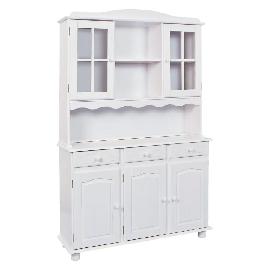 Nástavec je z masivního borovicového dřeva, nalakovaného bílým lakem, stejně jako příborník. Dokonale se tedy k sobě hodí. Získáte tak další poličky, ať už otevřené na věci, které chcete mít rychle na dosah ruky, tak i za prosklenými dvířky. Otevřené poličky můžete zcela zaplnit například kořenkami se vším běžným i netradičním kořením, které při vaření používáte nebo se chystáte použít. Prosklená dvířka pak ochrání před prachem nejen kuchařské knihy a recepty po babičce, ale také hrníčky, skleničky, nebo třeba odměrky, váhy, závaží.