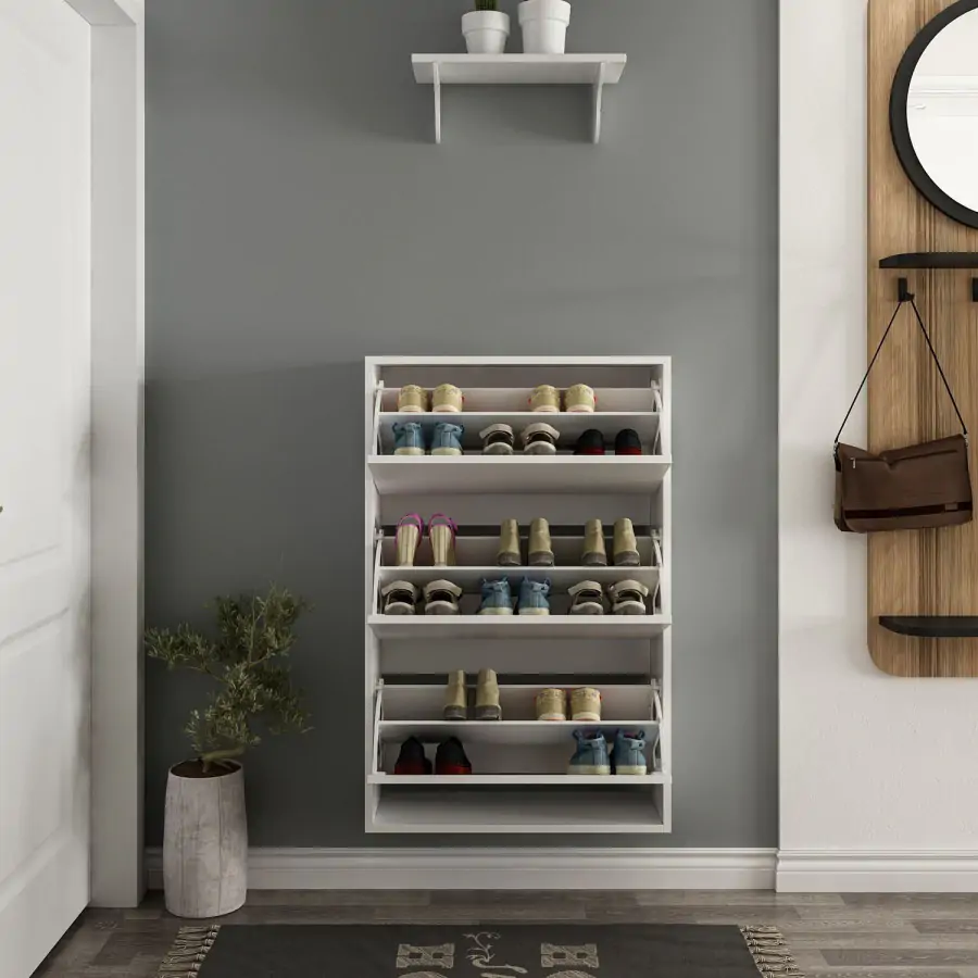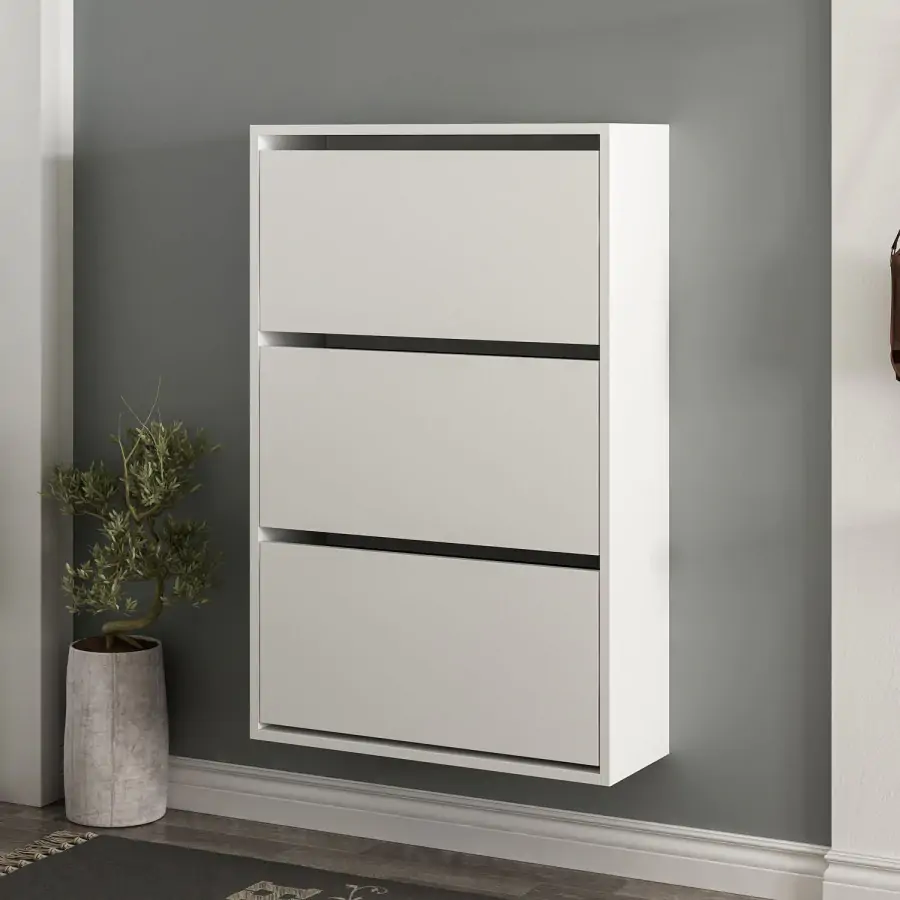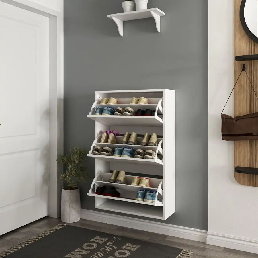 Nástěnný výklopný botník Lupa 3 je vyrobena ze 100% dřevotřísky s melaminovým povlakem.