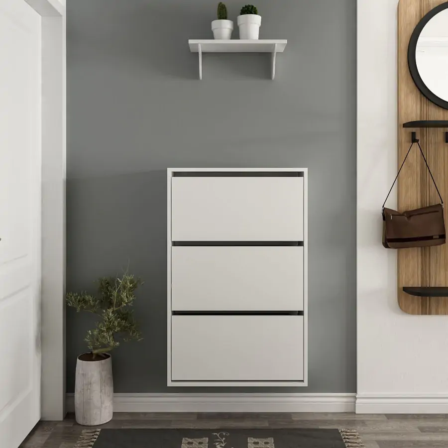 Nástěnný výklopný botník Lupa 3 je vyrobena ze 100% dřevotřísky s melaminovým povlakem. Tloušťka 18 mm zajišťuje odolnost a stabilitu, zatímco bílá barva dodává vašemu prostoru nádech...