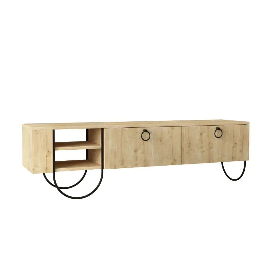 Objevte kouzlo , TV stolek ve vintage a retro stylu, který kombinuje funkčnost s neopakovatelným vzhledem. Odstín dubu v kombinaci s lesklými kovovými detaily dodá vašemu obývacímu pokoji teplý a elegantní vzhled.