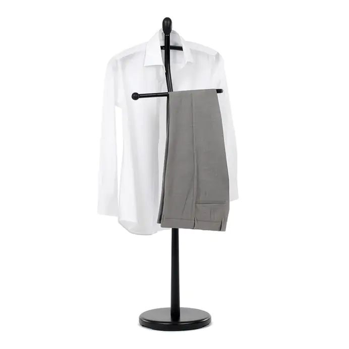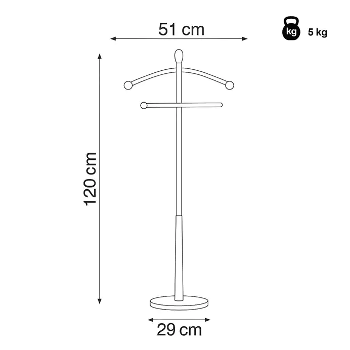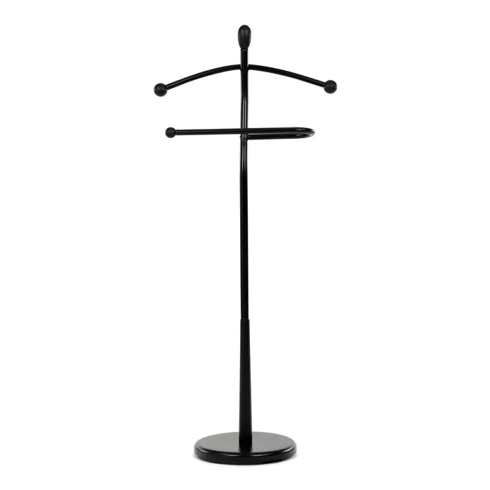 Praktický minimalistický němý sluha 82646 BK v sobě kombinuje prvky z masivního kaučukovníkového dřeva s kovovými nosnými díly v černé povrchové úpravě. Výška 120 cm Vám umožní zavěšení oblečení i...
