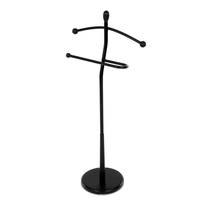 Praktický minimalistický němý sluha 82646 BK v sobě kombinuje prvky z masivního kaučukovníkového dřeva s kovovými nosnými díly v černé povrchové úpravě.