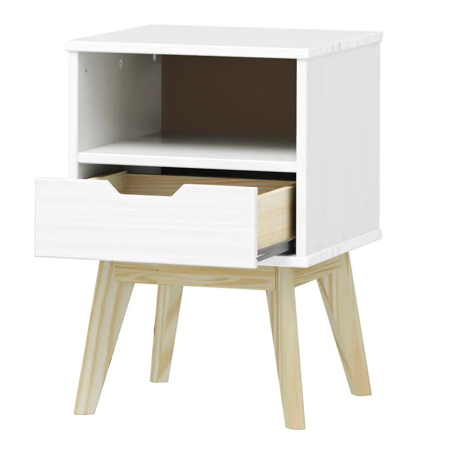 Noční stolek BONITO bílý lak bude dokonalým pomocníkem u lůžka.