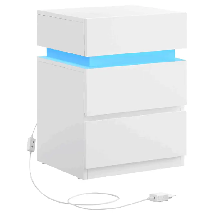 Noční stolek ANT-E1163 WT z MDF v bílém provedení nabízí praktický úložný prostor ve dvou zásuvkách s hladkým povrchem. Jeho minimalistický design doplňuje integrované LED osvětlení s modrým světlem...