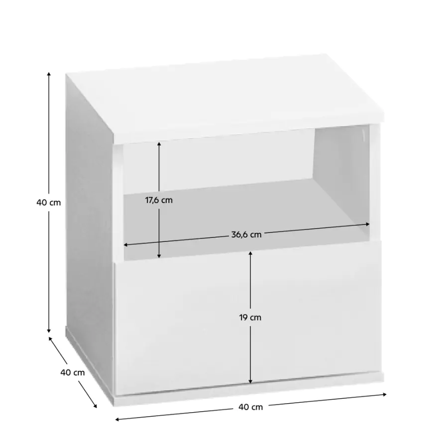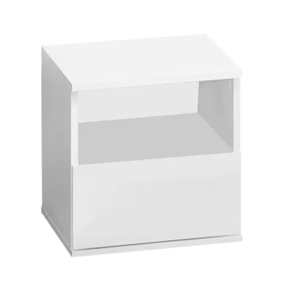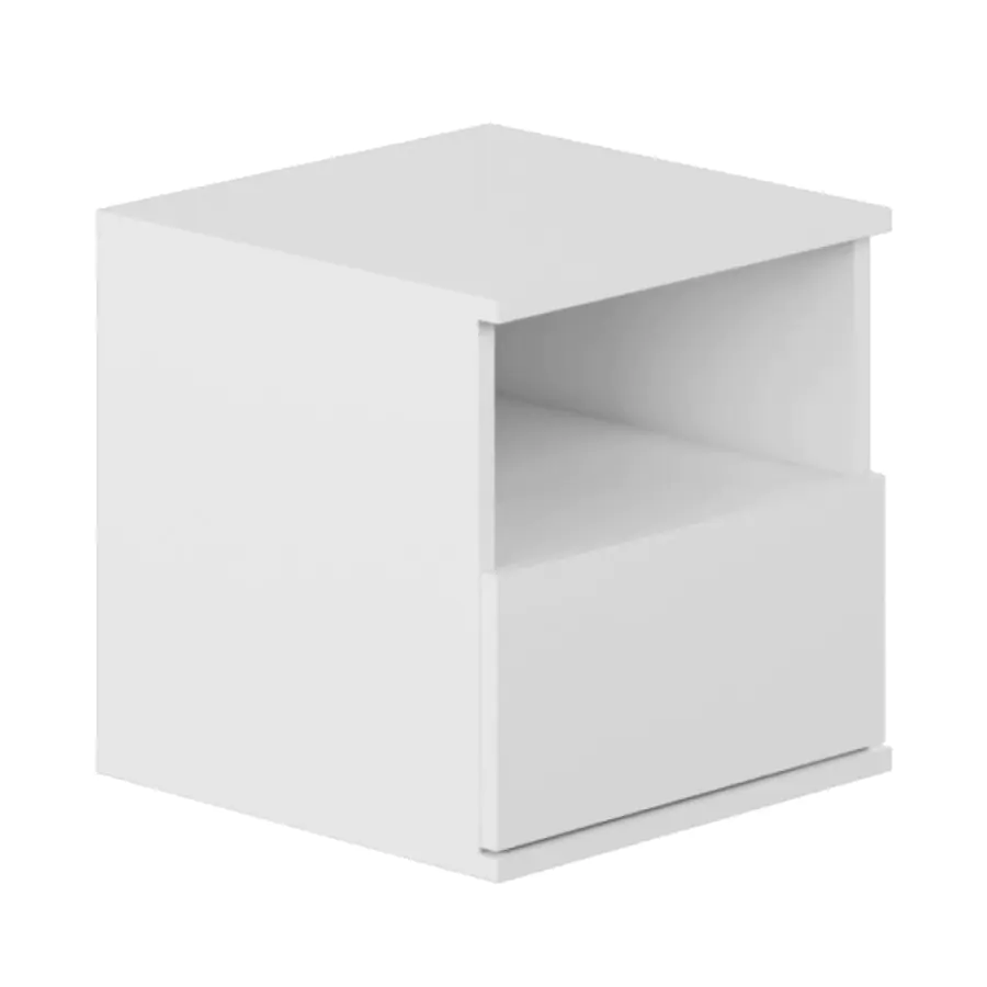Noční stolek DOLI je nepostradatelným společníkem a neměl by chybět v žádné ložnici či dětském pokoji. Je malý, elegantní kus nábytku, který poskytuje funkční prostor vedle postele. Stolek obsahuje zásuvku a otevřený úložný prostor pro uskladnění osobních věcí, jako jsou knihy , brýle, budík či lampička. Vyroben je z laminované DTD v barevném provedení bílá.