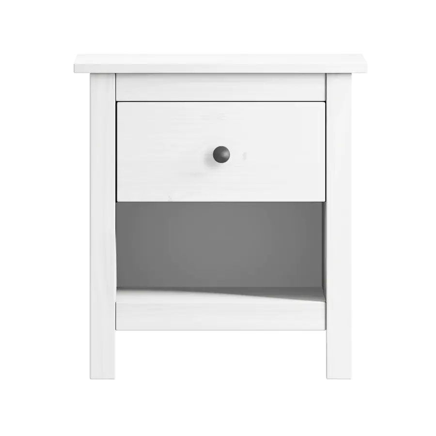 Noční stolek TORINO v provedení masiv borovice bude vítaným doplněním vašeho bílého masivního lůžka. Klasický noční stolek s jednou zásuvkou s kovovými pojezdy a jednou poličkou si zaslouží čestné místo...