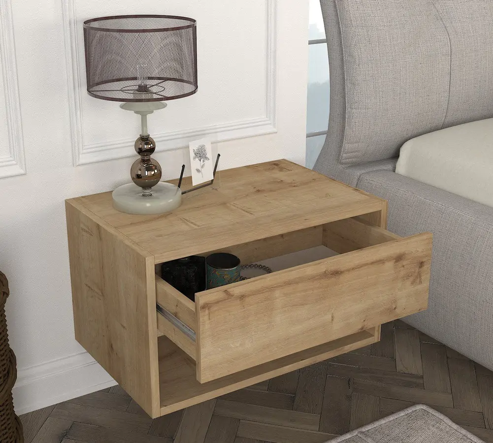 Závěsný noční stolek VIKTORIE se zásuvkou je kvalitního lamina o tl.18 mm hraněné PVC páskou, odolného proti poškrábání v barvě sapphire.