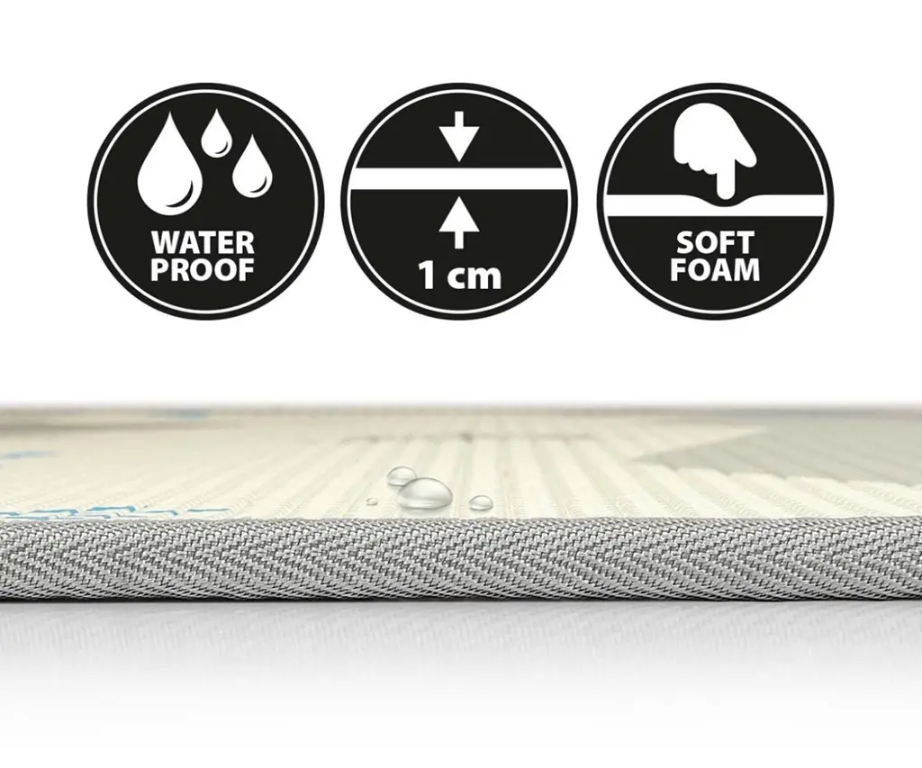 Podložka je vyrobena z protiskluzové antialergické pěny, která zajistí bezpečnost a poskytne vynikající izolaci od studených podlah. Údržba je velice jednoduchá a podložku tak lze využít i k venkovnímu hraní.