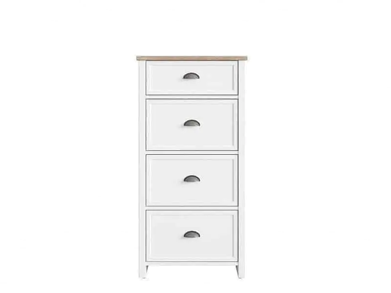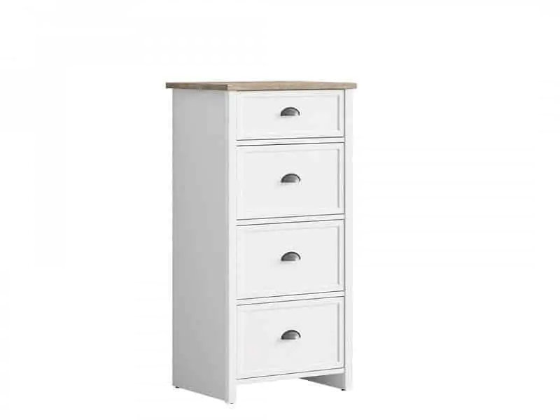 Vysoká komoda Cannet KOM4S/60 je dodávána ve dvou barevných provedeních: - bílá/dub monument/bílá - dub monument Komoda má 4 zásuvky na kuličkových pojezdech a s kovovými úchyty. Materiál:...