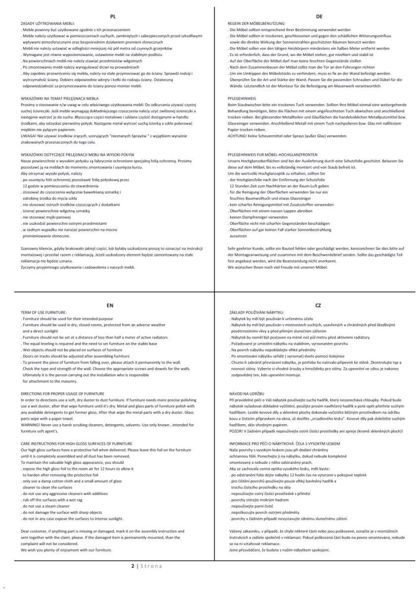 Je dodávána v barevné kombinaci korpus bílý mat/dvířka bílá vysoký lesk