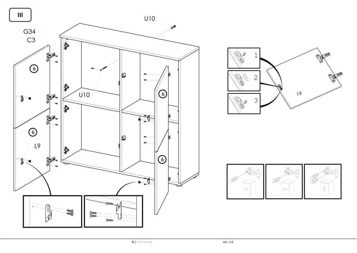 Komoda obsahuje otevírací systém dvířek Push/Click.