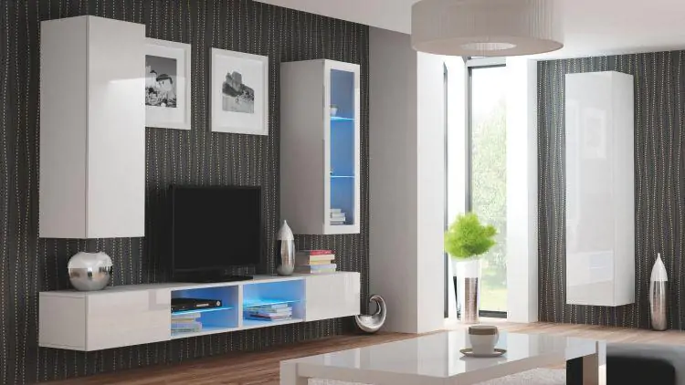 Kombinací jednotlivých vitrín, televizního stolku a skříněk Livo si jednoduše vytvoříte obývací stěnu podle Vašich představ.