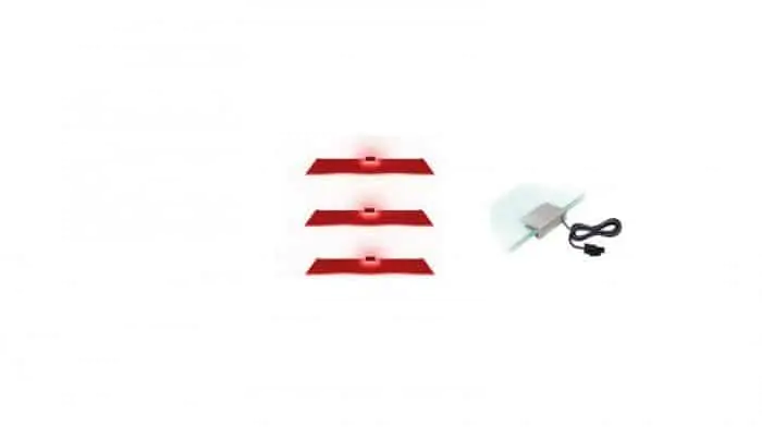Úsporné LED osvětlení vhodné do moderního obývacího pokoje. Osvětlení je s červeným podbarvením, rozzáří Vaši obývací stěnu a dodá proskleným plochám ten správný šmrnc. Balení obsahuje osvětlení pro 3...