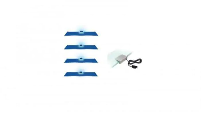 Balení obsahuje osvětlení pro 4 police včetně zdroje.