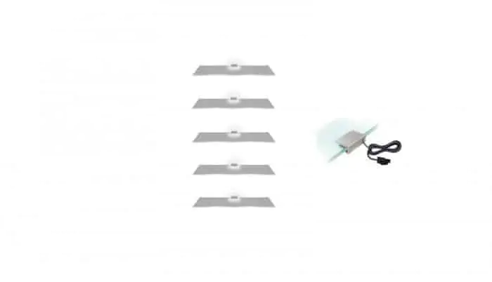 Balení obsahuje osvětlení pro 5 polic včetně zdroje.