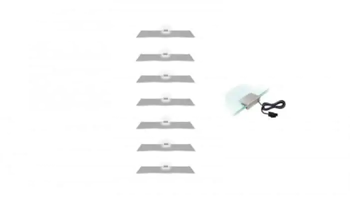 Úsporné LED osvětlení vhodné do moderního obývacího pokoje. Osvětlení je s bílým podbarvením, rozzáří Vaši obývací stěnu a dodá proskleným plochám ten správný šmrnc. Balení obsahuje osvětlení pro 7 polic.
