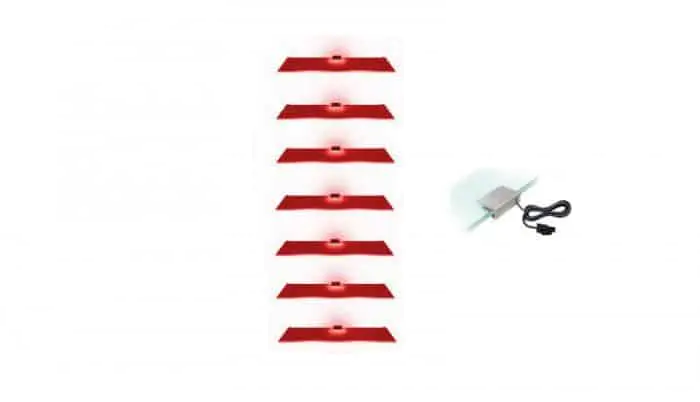 Úsporné LED osvětlení vhodné do moderního obývacího pokoje. Osvětlení je s červeným podbarvením, rozzáří Vaši obývací stěnu a dodá proskleným plochám ten správný šmrnc. Balení obsahuje osvětlení pro 7...