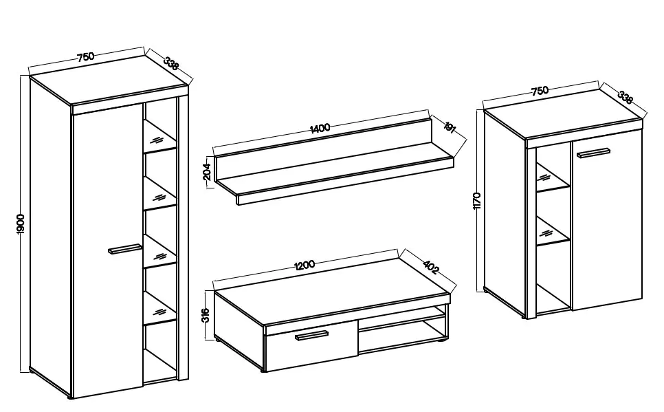 Moderní obývací stěna PUERTO , která si zakládá na nejnovějších trendech bydlení. Nábytek je vyroben z kvalitního lamina. Sestava se skládá z ( šířka/hloubka/výška ) TV stolek ( 120 x 40,3 x 31...