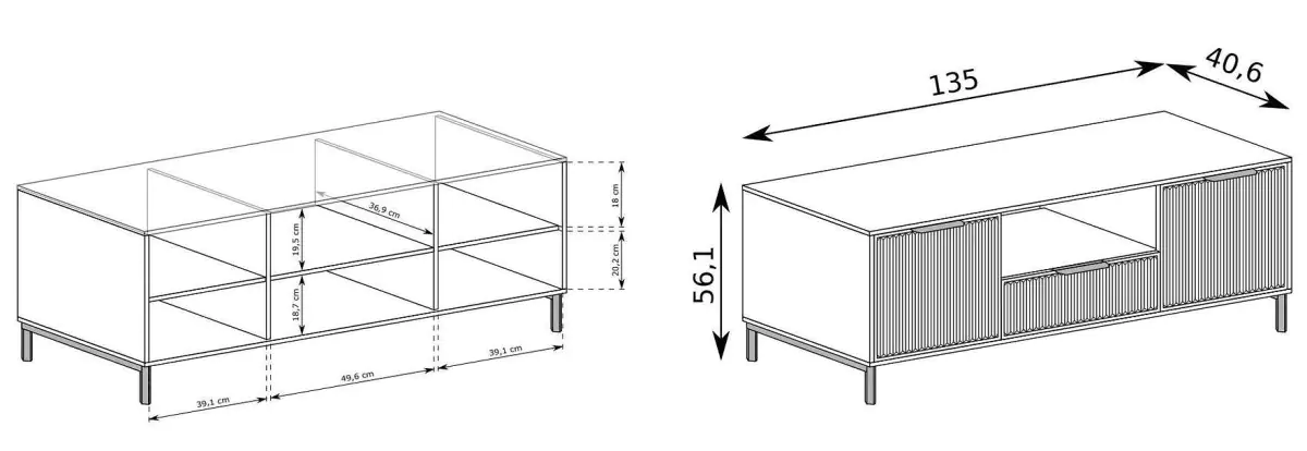 - rozměry TV stolku - 135 x 40,6 x 56,1 cm*