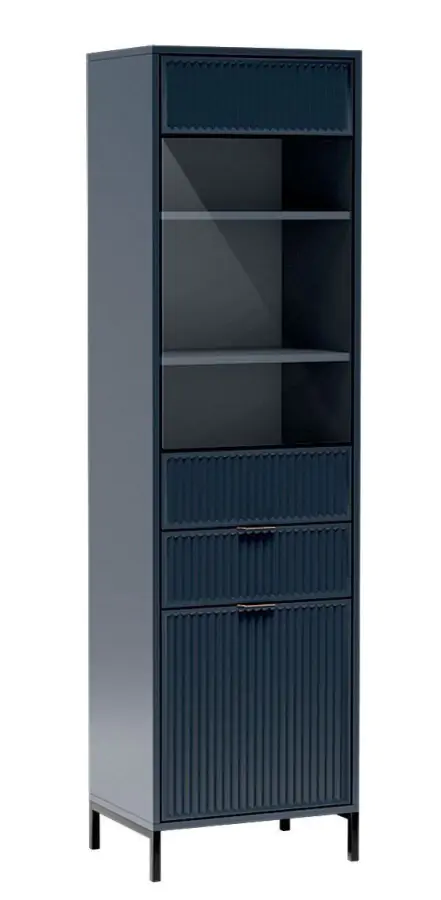 Obývací stěna ODEON v neobvyklém odstínu tmavě modré barvy indigo , skvěle doplní každý moderní interiér obývacího pokoje! Jemné tóny doplňují kovové nožky kontrastní černé...