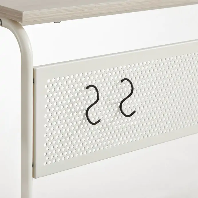Matný povrch desky usnadňuje údržbu a odolává běžnému opotřebení. Kovová konstrukce je doplněna o čtyři kolečka, která umožňují snadnou mobilitu stolku a jeho flexibilní umístění v prostoru.