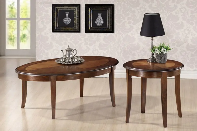 Stolek je vyrobený z dřeva ( podstavec - masiv, deska - MDF se vzorem) v barvě tmavý ořech.