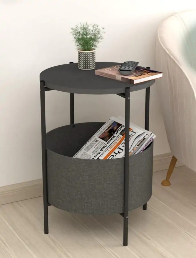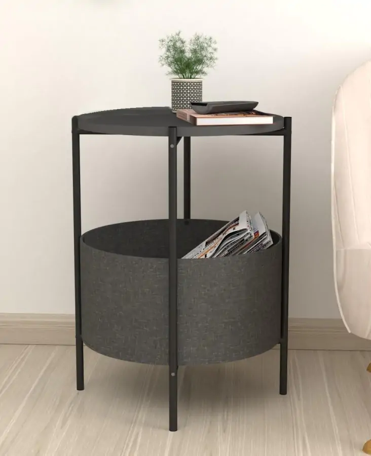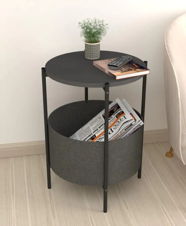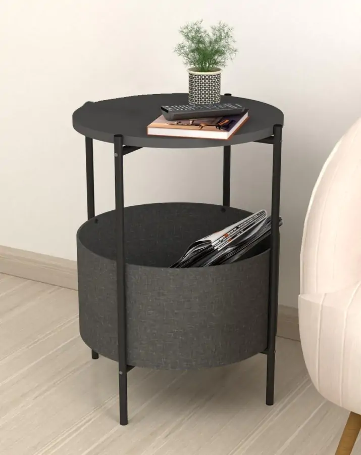 Kulatý odkládací/konferenční stolek JUDITH je z kovového rámu v matné černé barvě a horní deska je vyrobena z kvalitní LTD desky v barvě antracit. Praktický košík na odkládání věcí je vyrobený z látky a...