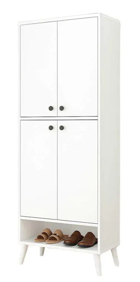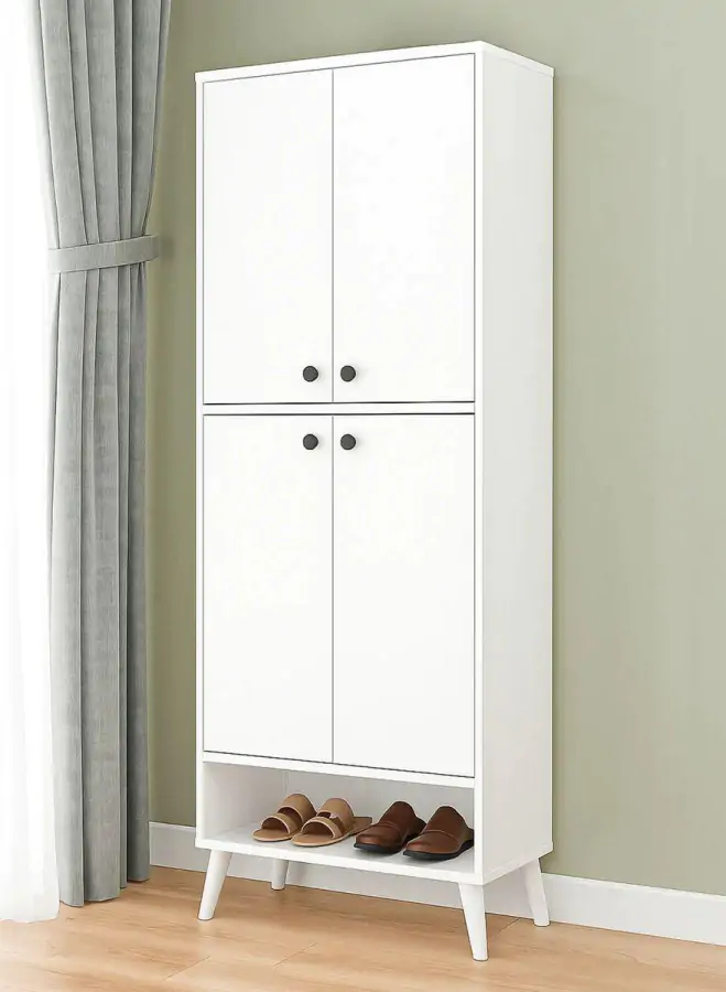 Praktická víceúčelová skříňka OGATA se 4 dveřmi a 8 policemi, vhodná jako botník, úložná skříňka do koupelny nebo pro využití v dětském pokoji.