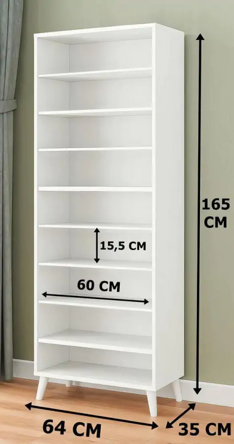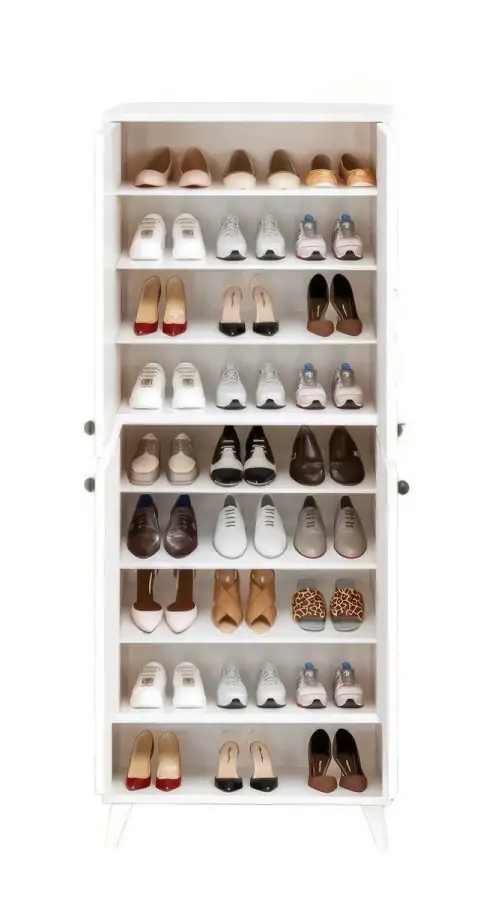 Praktická víceúčelová skříňka OGATA se 4 dveřmi a 8 policemi, vhodná jako botník , úložná skříňka do koupelny nebo pro využití v dětském pokoji. Rozměry: výška 90 cm /...