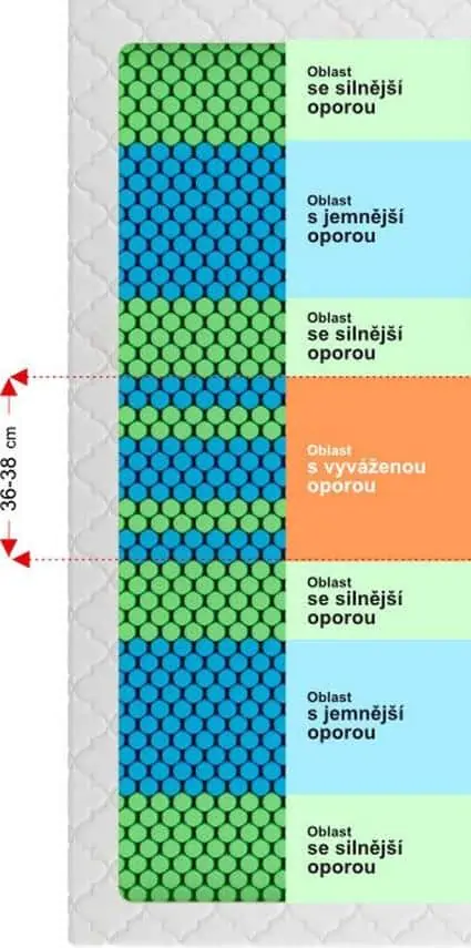 Mají 7-zónové adaptační rozdělení zátěže na podporu každé části těla spící osoby (výška 14 cm, 256 pružin na 1/m²).