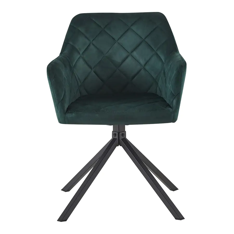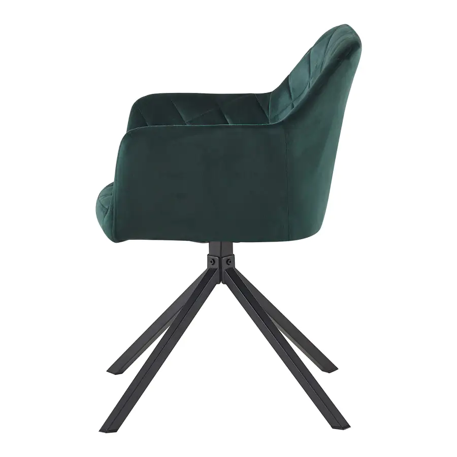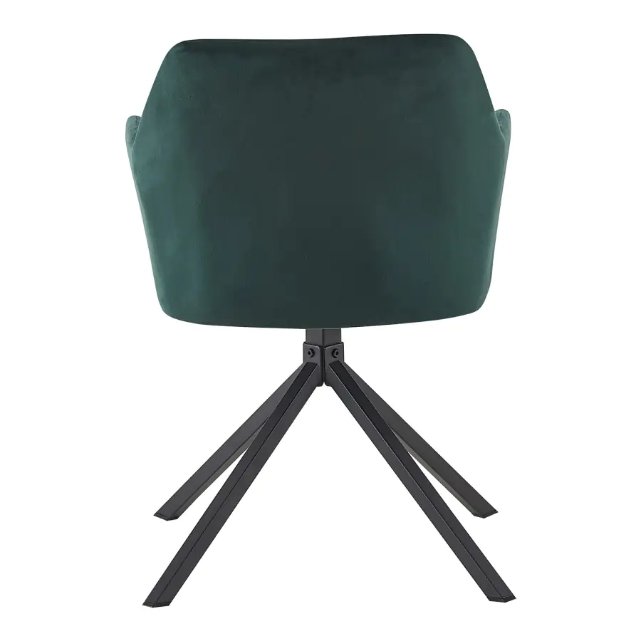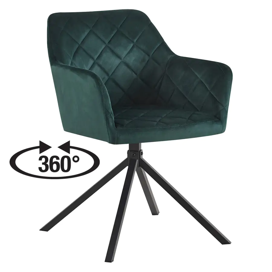 Otočná zelená jídelní židle Sines v sametovém provedení je jako pozvánka do interiérového nebe pro všechny, kdo mají slabost pro pohodlí, styl a barvy, které mají charakter.