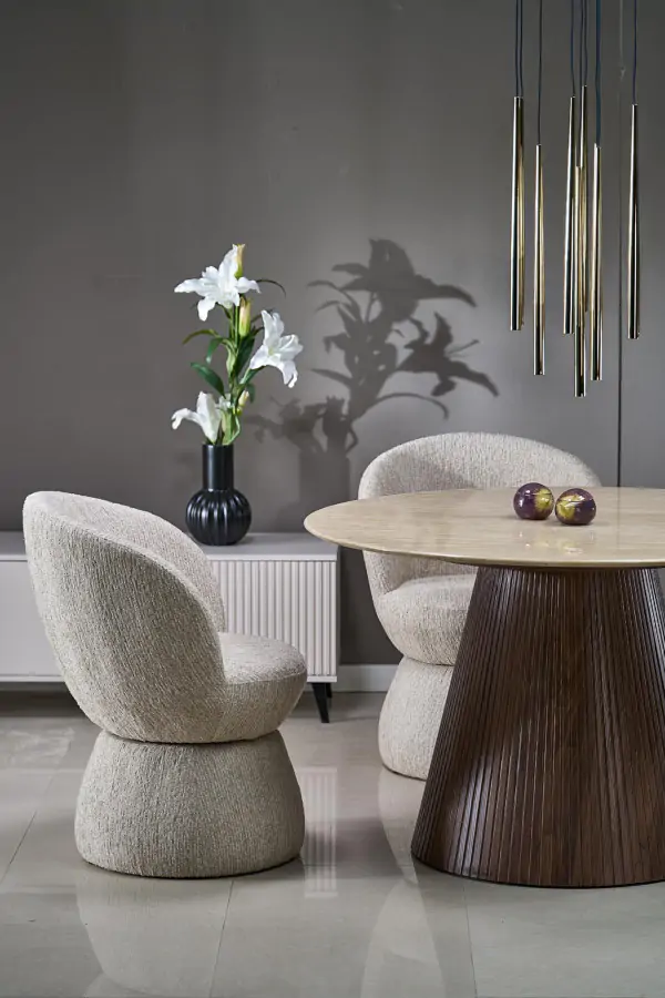 Toto netradiční a výjimečné jídelní křeslo přináší do interiéru výrazný retro šarm v moderním pojetí. Jeho originální design okamžitě upoutá pozornost a stane se dominantním prvkem každé jídelny či stylové kavárny. Otočné sedadlo o 360° zajišťuje maximální pohodlí a funkčnost, zatímco precizně zpracované detaily podtrhují jeho exkluzivní charakter.