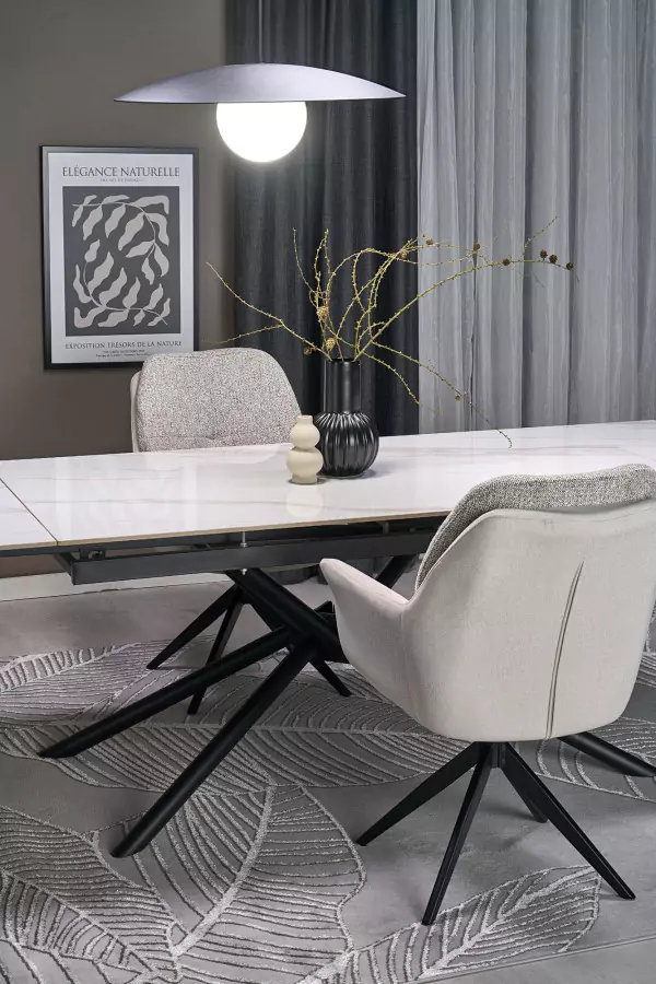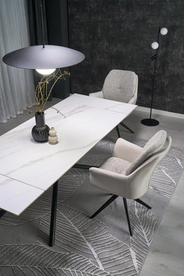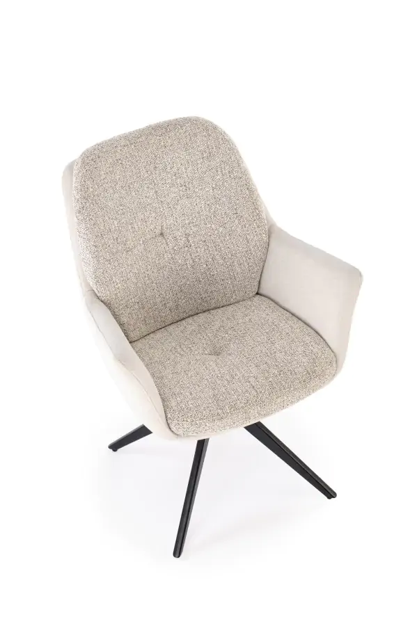 Kombinace dvou struktur látek dává křeslu zajímavý akcent a podtrhuje jeho moderní charakter. Díky funkci otáčení a ergonomicky tvarovanému sedáku si užijete maximální pohodlí při každém stolování.