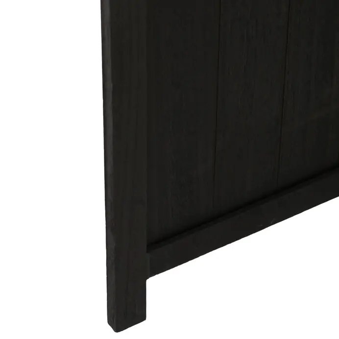 Pevné panty umožňují snadné skládání a přizpůsobení úhlu rozložení podle potřeby. Povrchová úprava v černé barvě podtrhuje výraznou texturu dřeva a usnadňuje údržbu.