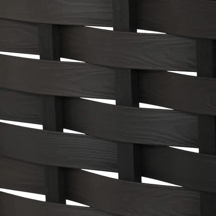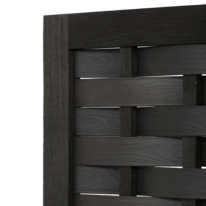 Horní část tvoří propletené lamely, které propouštějí světlo a zároveň zajišťují dostatečnou míru soukromí, spodní část je tvořena plnou deskou s viditelnou strukturou dřeva.