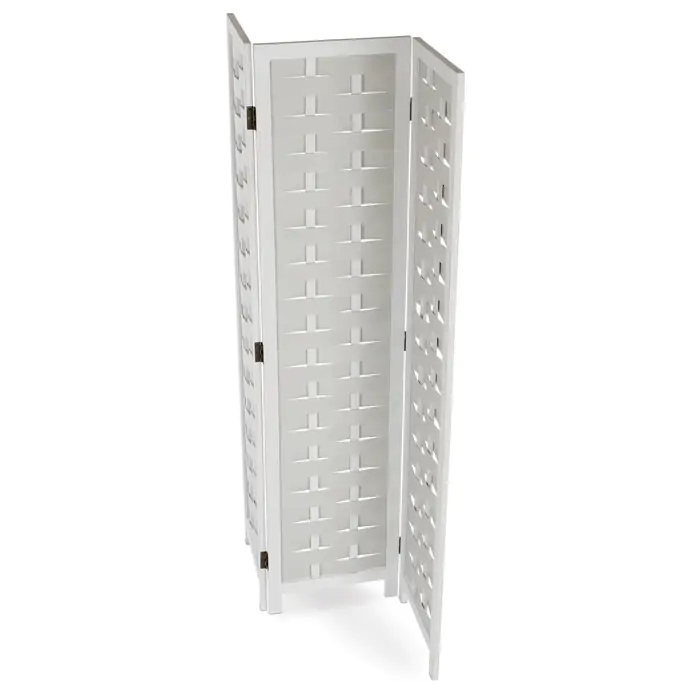 Třídílný paraván EF-L186 WT vyrobený z masivního smrkového dřeva v bílé vintage barvě nabízí praktické řešení pro rozdělení prostoru i dekorativní doplněk interiéru.