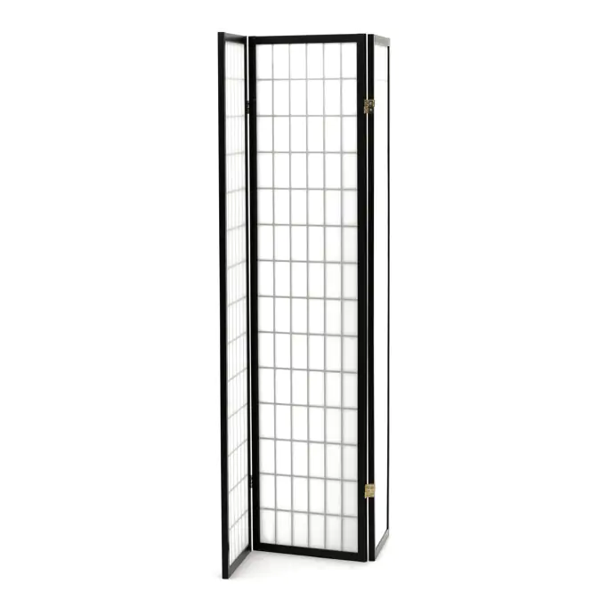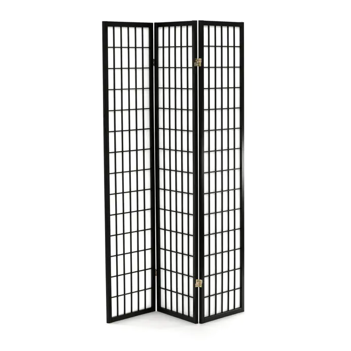 Třídílný paraván EF-E803 BK je vyroben z masivního smrkového dřeva s povrchovou úpravou v černém matném laku, který zajišťuje kvalitní zpracování a dlouhou životnost.