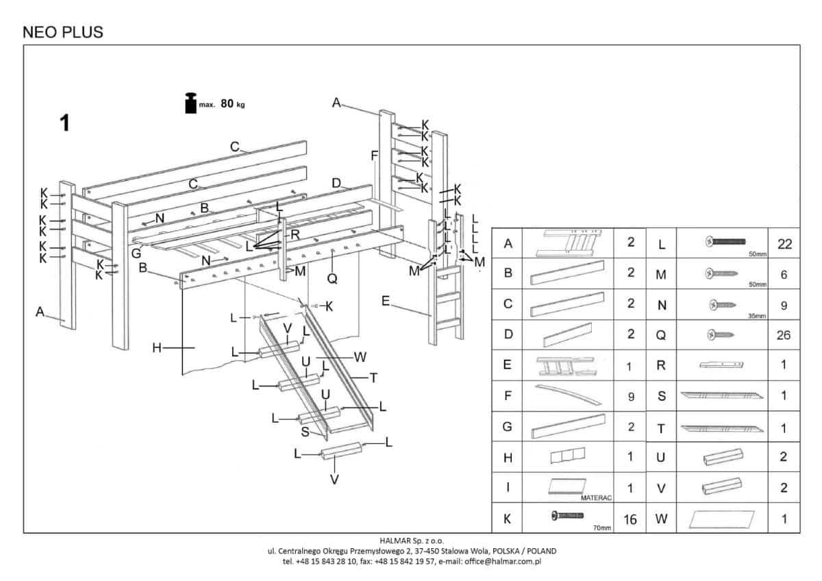 Provedení: Patrová postel (palanda) Neo Plus se skluzavkou je vyrobena z lakovaného borovicového dřeva. Postel je dodávána s matrací. Tato veselá dětská postýlka dále disponuje hracím prostorem ...