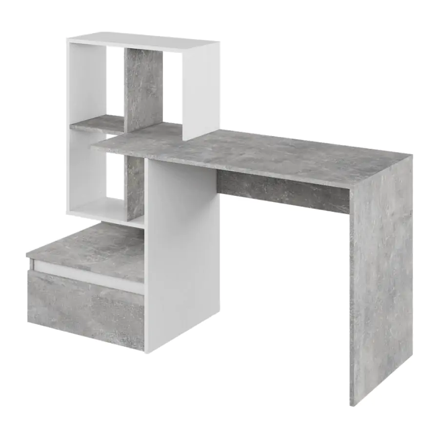 Nereo je multifunkční stůl, který se pyšní moderním designem. Nabízí úložný prostor v podobě zásuvky a otevřených poliček. Moderní kombinace barev beton/bílá je perfektní volbou do jakéhokoli interiéru.