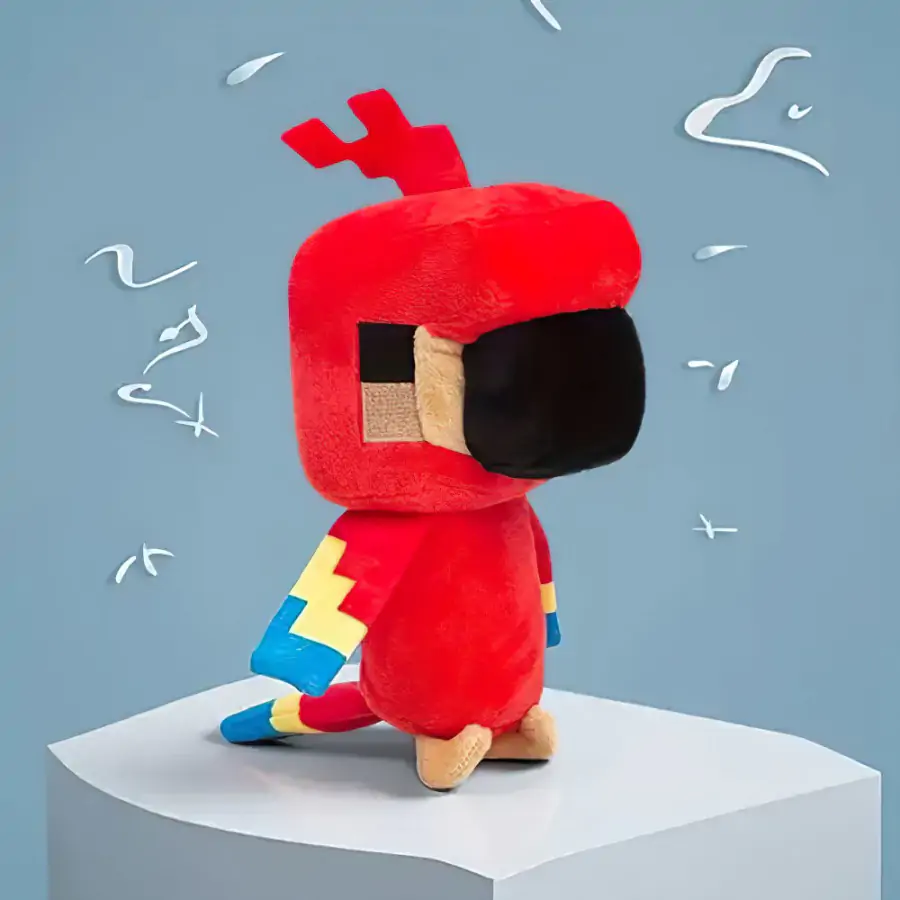 Papoušek v červeném provedení s typickými modro-žlutými křídly a černým zobákem věrně kopíruje svou digitální předlohu ze hry Minecraft. Tento virtuální mazlíček obývá džunglové biome a je oblíbený díky svému výraznému vzhledu a hravému chování. Plyšová verze je stejně přátelská a připravená na dobrodružství.