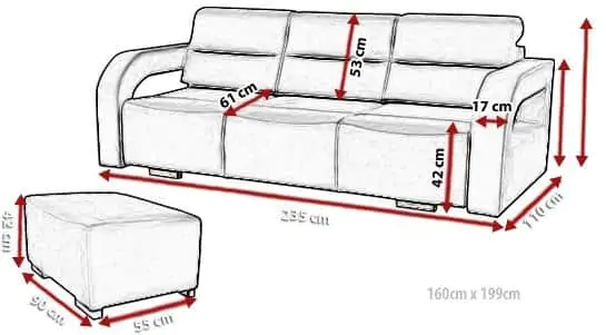 Pohovka Alza je rozkládací a součástí je i praktický úložný prostor a taburet. Zajímavé provedení područí, jí dodává lehkost a eleganci. Díky tomu nepůsobí mohutně a hodí se do každého interiéru. Výplň pohovky tvoří vlnité pružiny faliste v kombinaci s kvalitní PUR pěnou. Rozkládání je díky automatu jednoduché a po rozložení vznikne lůžko vhodné k příležitostnému přespání. Pohovku dodáváme v několika barevných provedeních, které také naleznete v naší nabídce. Rozpis rozměrů najdete na přiloženém obrázku s nákresem. V ceně pohovky je i vyobrazený taburet. Ostatní dekorace nejsou v ceně.