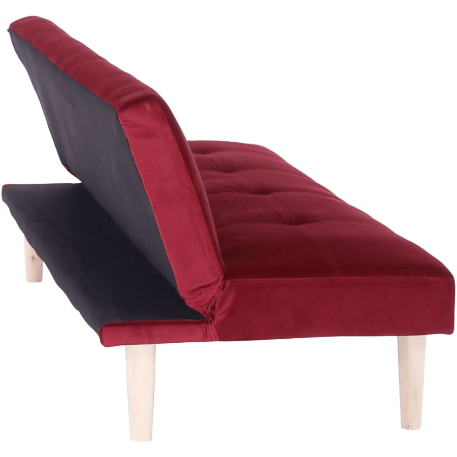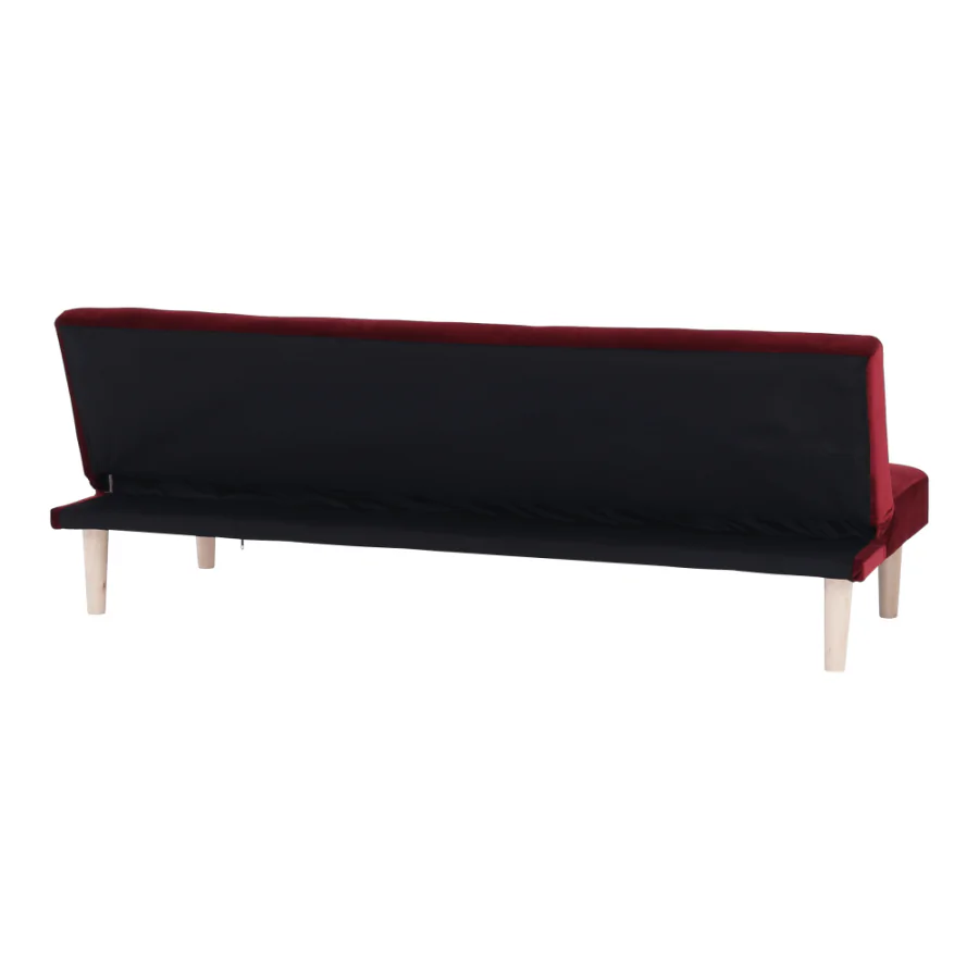 Rozkládací pohovka ALIDA - bordó Velvet látka / dub