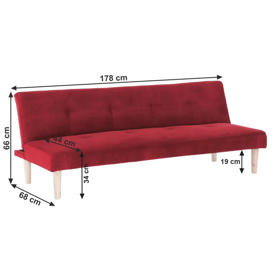 Rozkládací pohovka s kvalitní molitanovou výplní sedáku a dřevěnými nožičkami je příjemným spojením elegantního designu, funkčnosti a atraktivní ceny. Díky rozkladu ji snadno přeměníte na lůžko o rozměrech (ŠxHxV): 178x84x34 cm, které můžete kdykoliv nabídnout hostům, kteří u vás zůstanou přes noc.