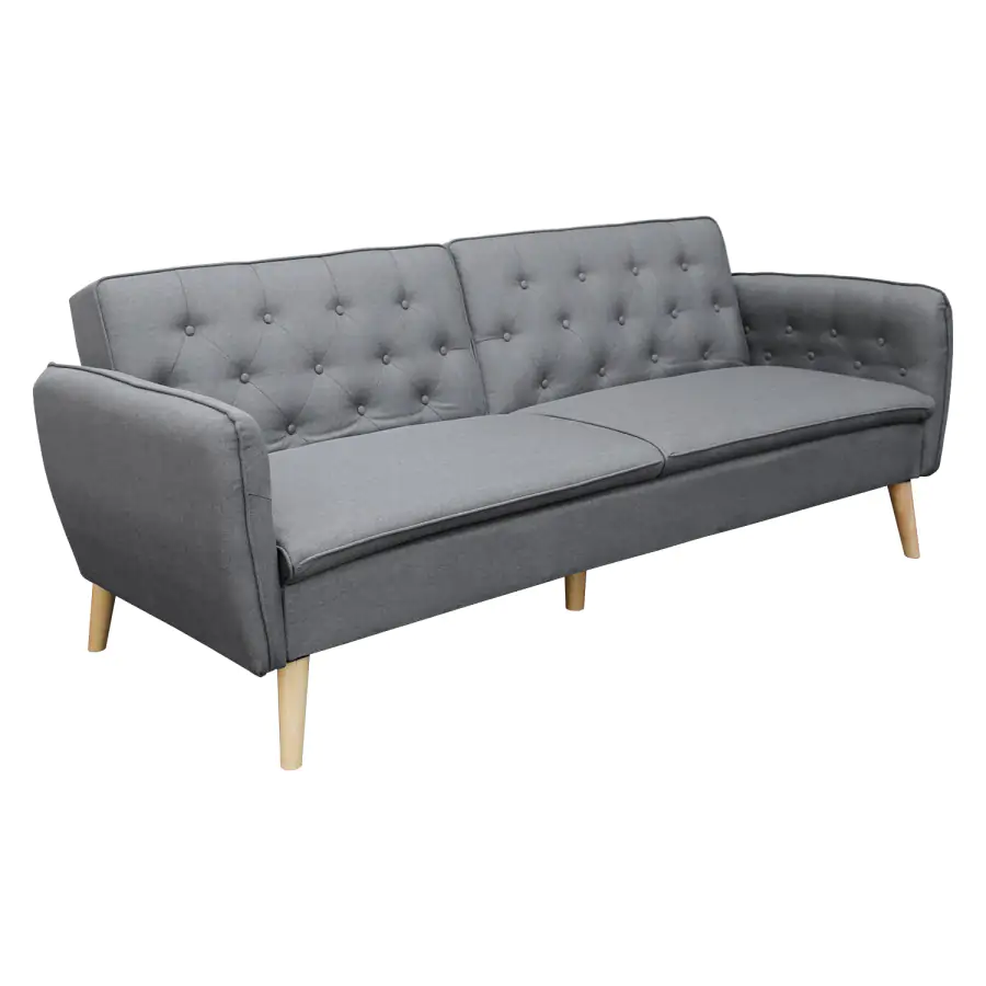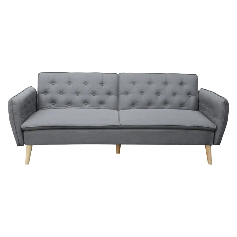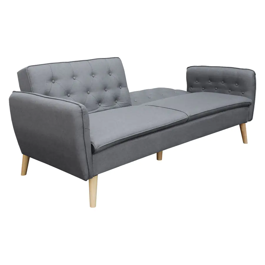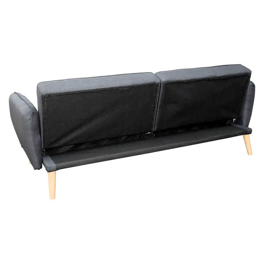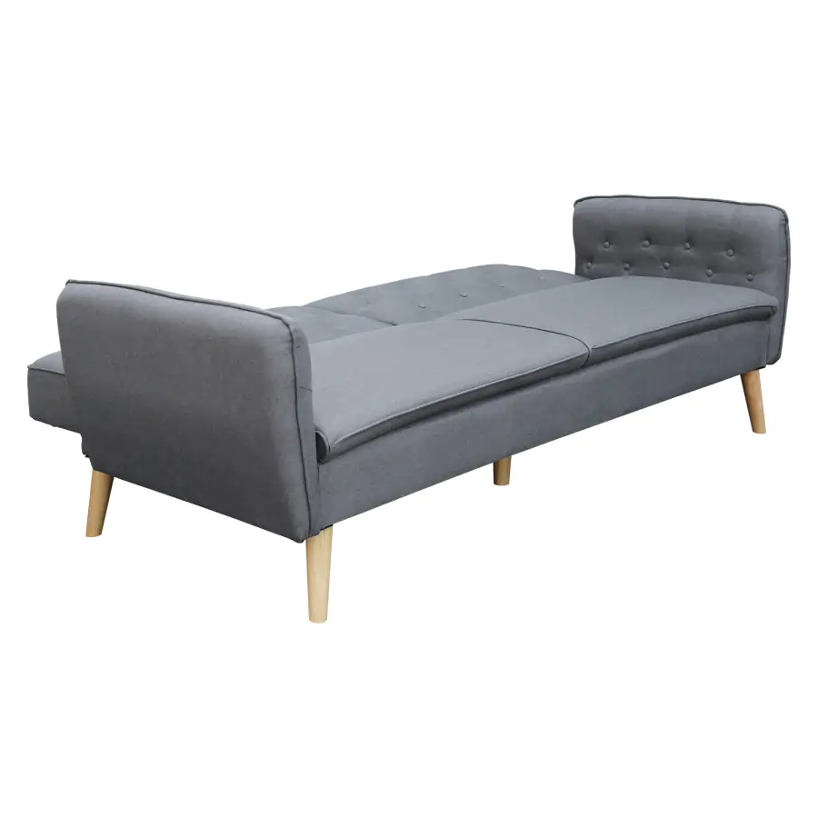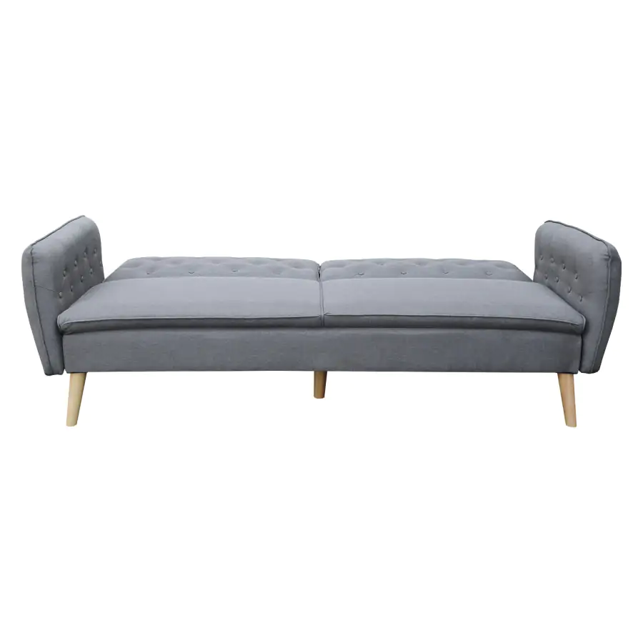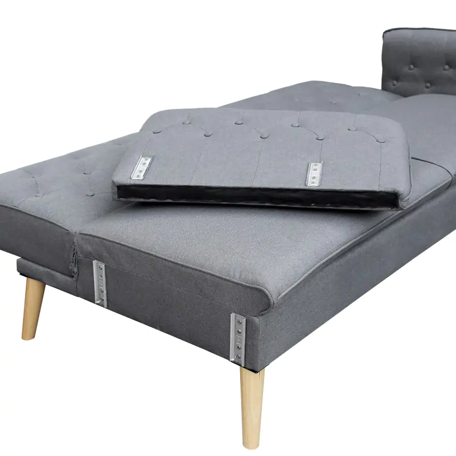 Sedací část je potažena příjemnou látkou šedé barvy. Stabilitu při sezení, i ležení zajistí nohy z kvalitního masivního dřeva.