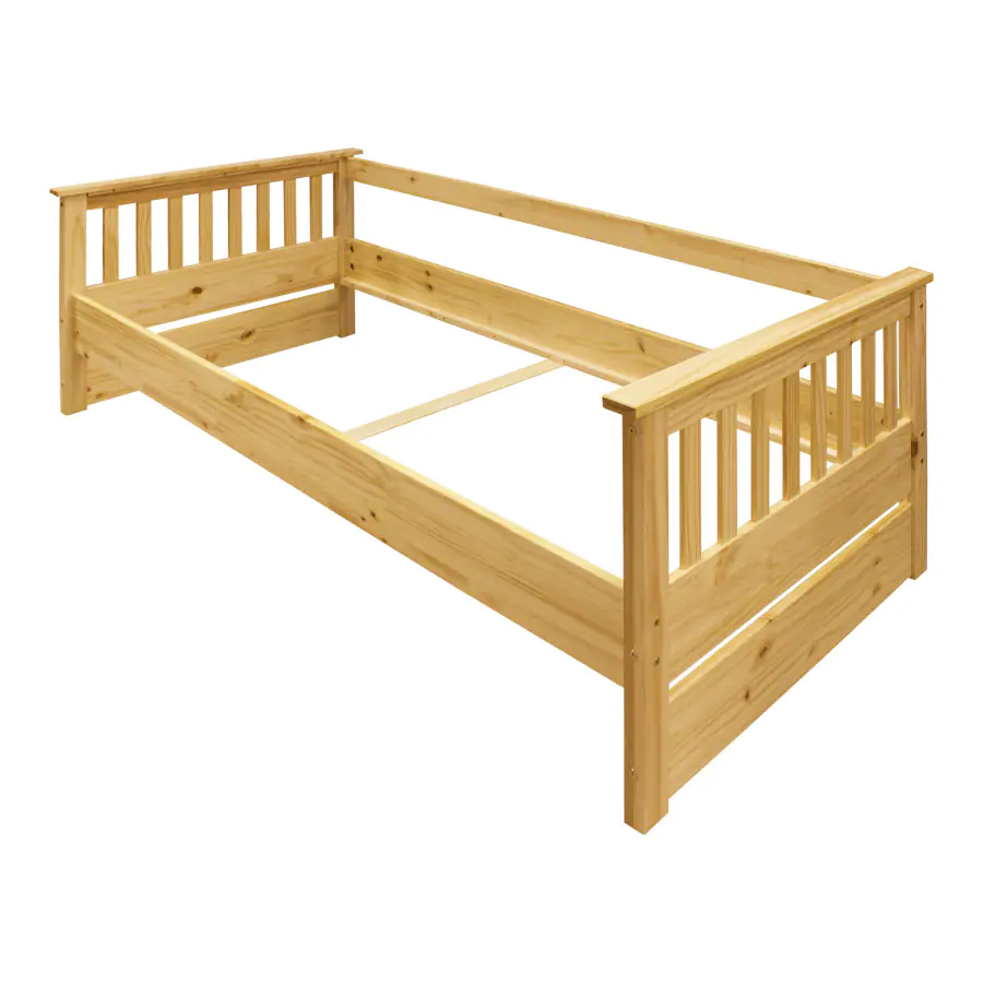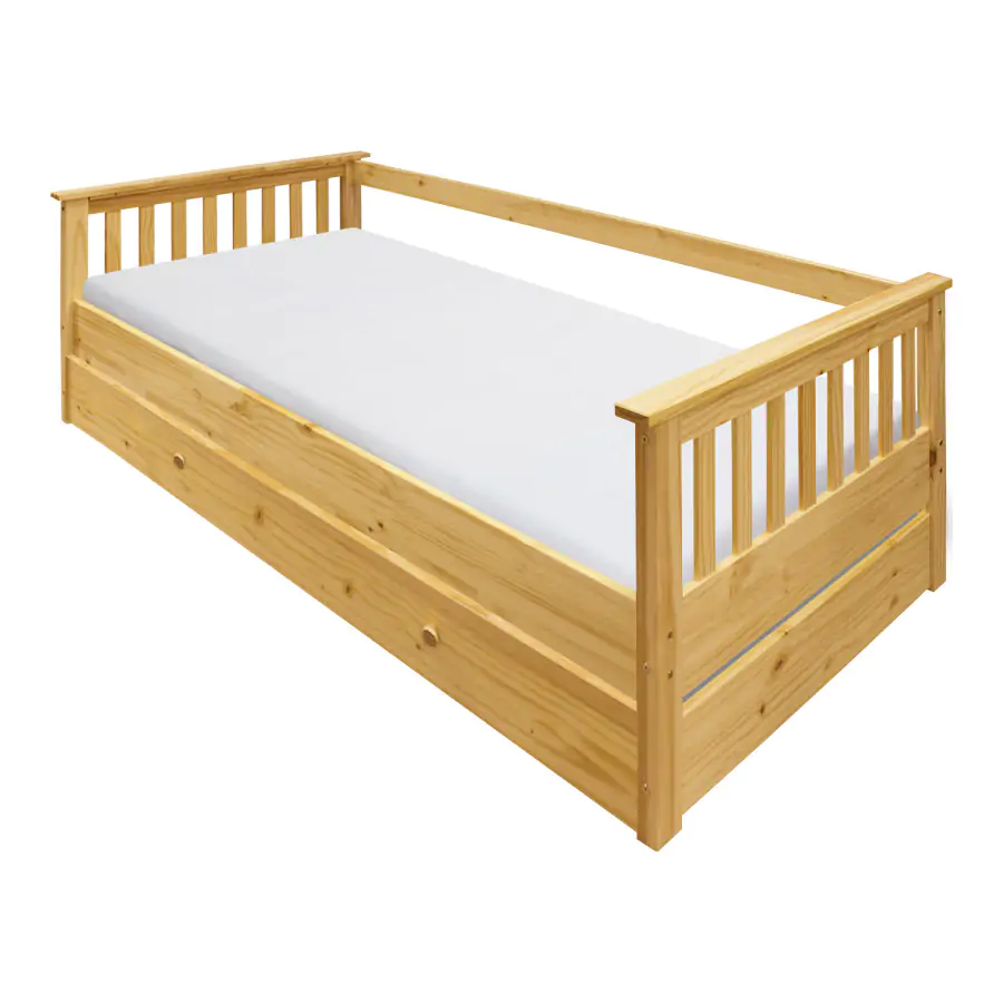 Jednolůžková postel/pohovka je vyrobena z masivní borovice, lakované provedení.