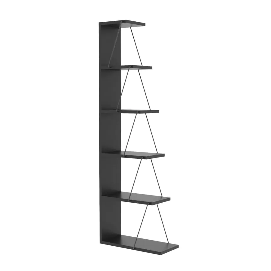 Kombinace černé kovové konstrukce a dekoru antracitu dodává regálu sofistikovaný vzhled, který zaujme na první pohled.