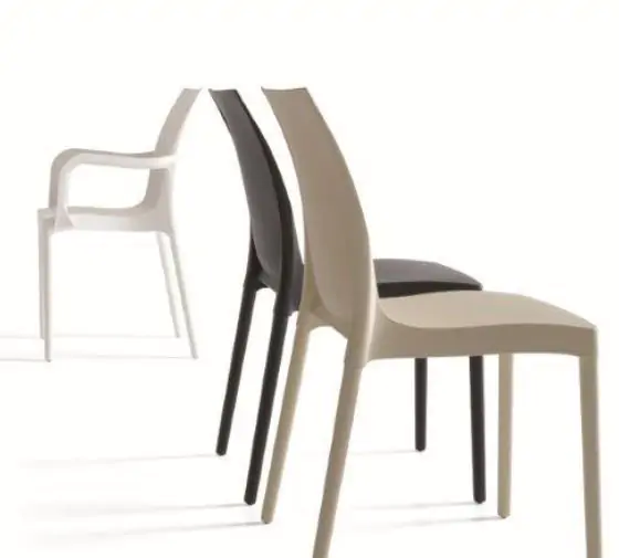 Stylová celoplastová židle vyrobená z kovového rámu a povrchu z technického polymeru.