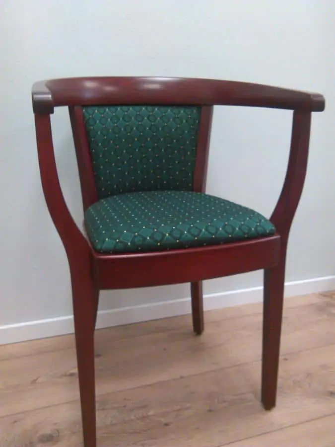 Dřevěné polokřeslo je vyrobené z masivního buku s čalouněným sedákem a čalouněnou zádovou opěrkou.
