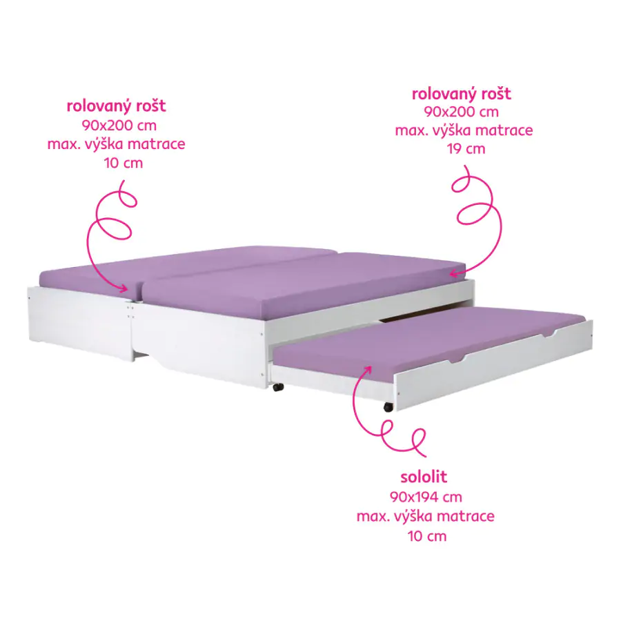 - Maximální výška matrace na výsuvnou přistýlku: 10 cm