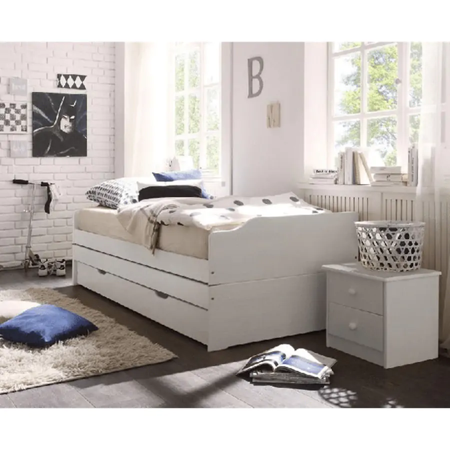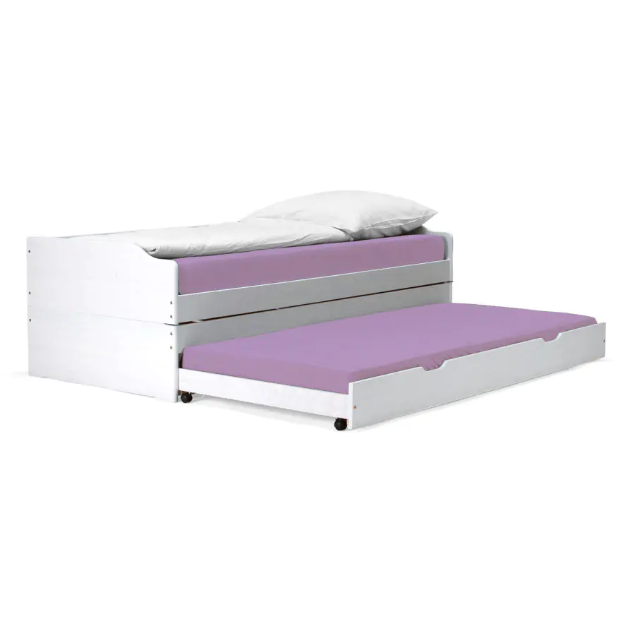 Tato víceúčelová postel je ideální pro menší prostory a pro flexibilní využití, například v dětských pokojích nebo pokojích pro hosty. Postel obsahuje hlavní lůžko a dvě přistýlky, které poskytují pohodlný prostor na spaní pro více.